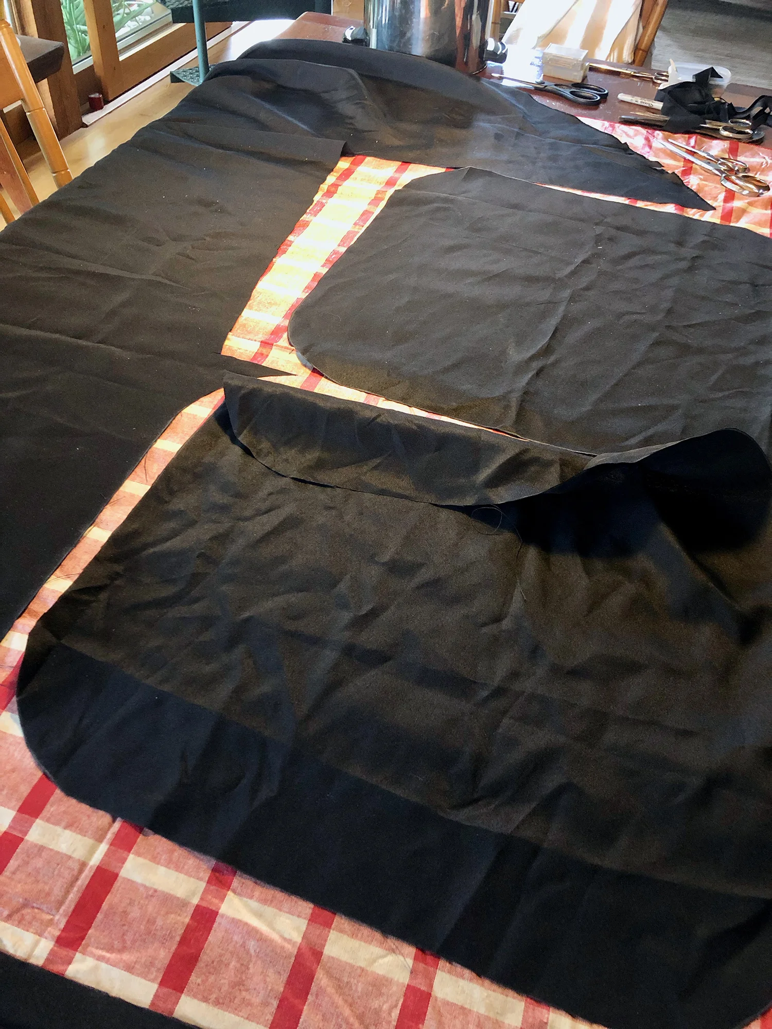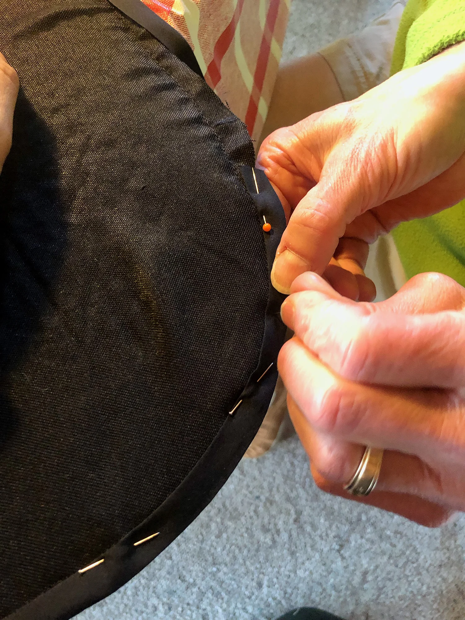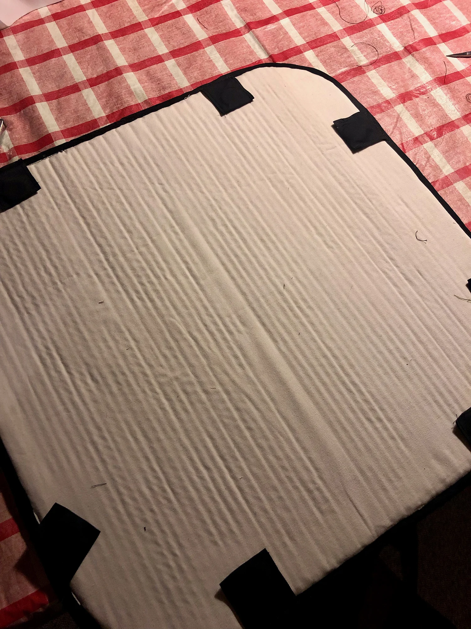 Next we added the bias tape around the edges and pinned all 4 windows before starting to sew. This was one of the most time consuming steps!