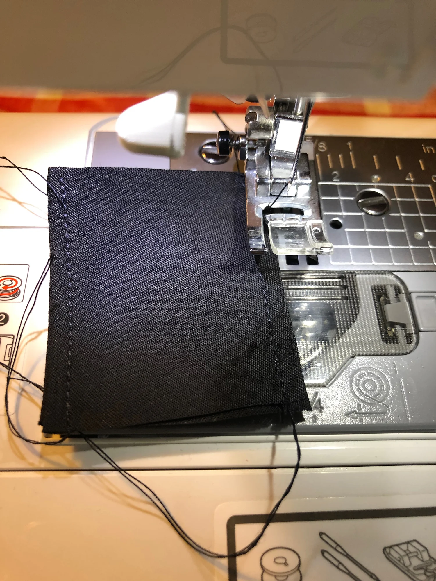 Finally! Slowly start sewing the edges. Make sure you aren’t too far in from the edge of the fabric so that it looks nice but not so close to the edge that it doesn’t catch. We ran into this issue a few times and had to go back and touch it up. Be sure to start sewing, make a back-stitch to lock the thread in and then begin sewing again.