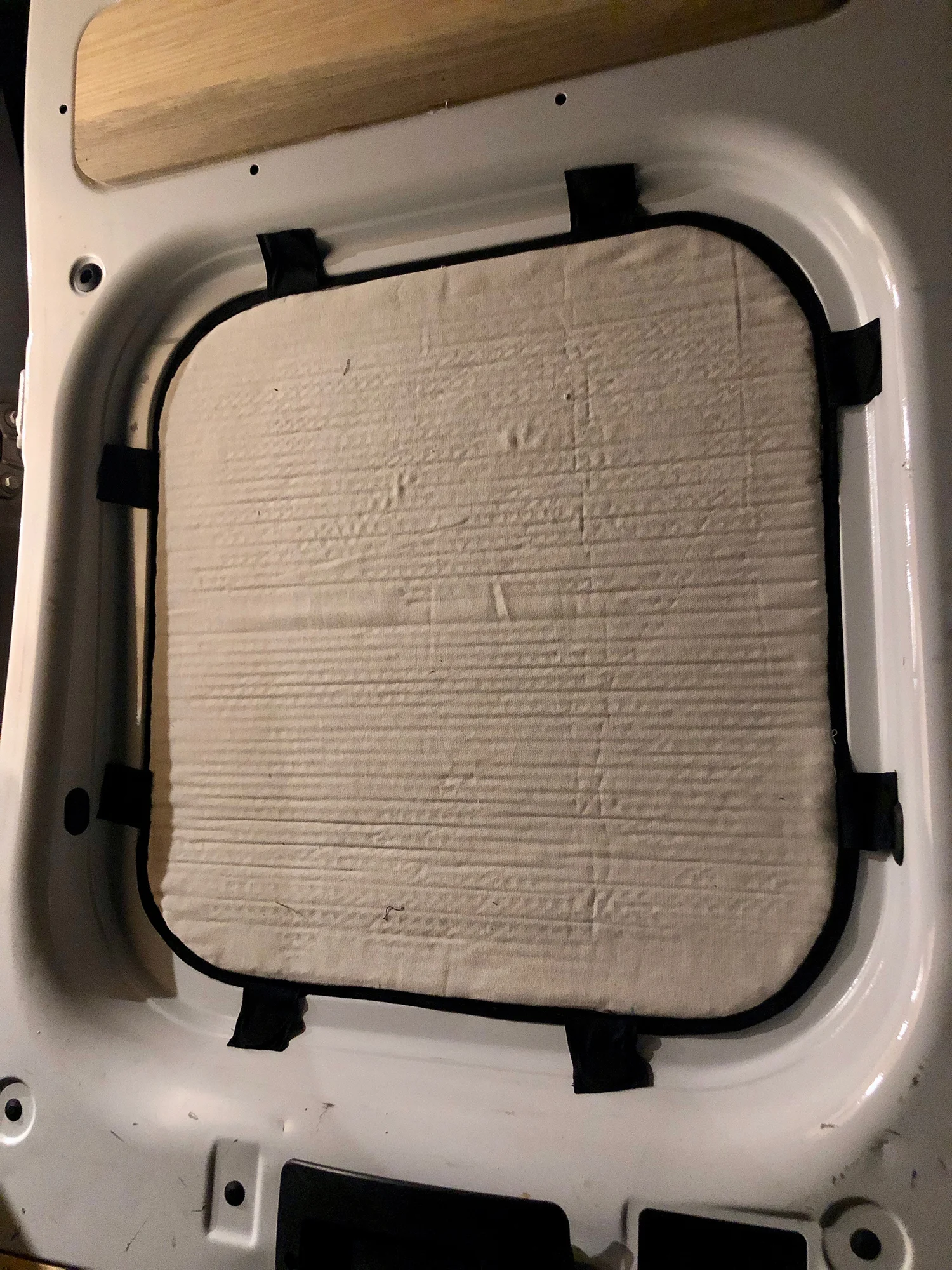 There are a number of different ways you could go about this step. You could use long magnets that get sewed into the seam, or velcro (although we don’t recommend it because heat will melt the glue), or loops and nails if your van windows have wood instead of metal.