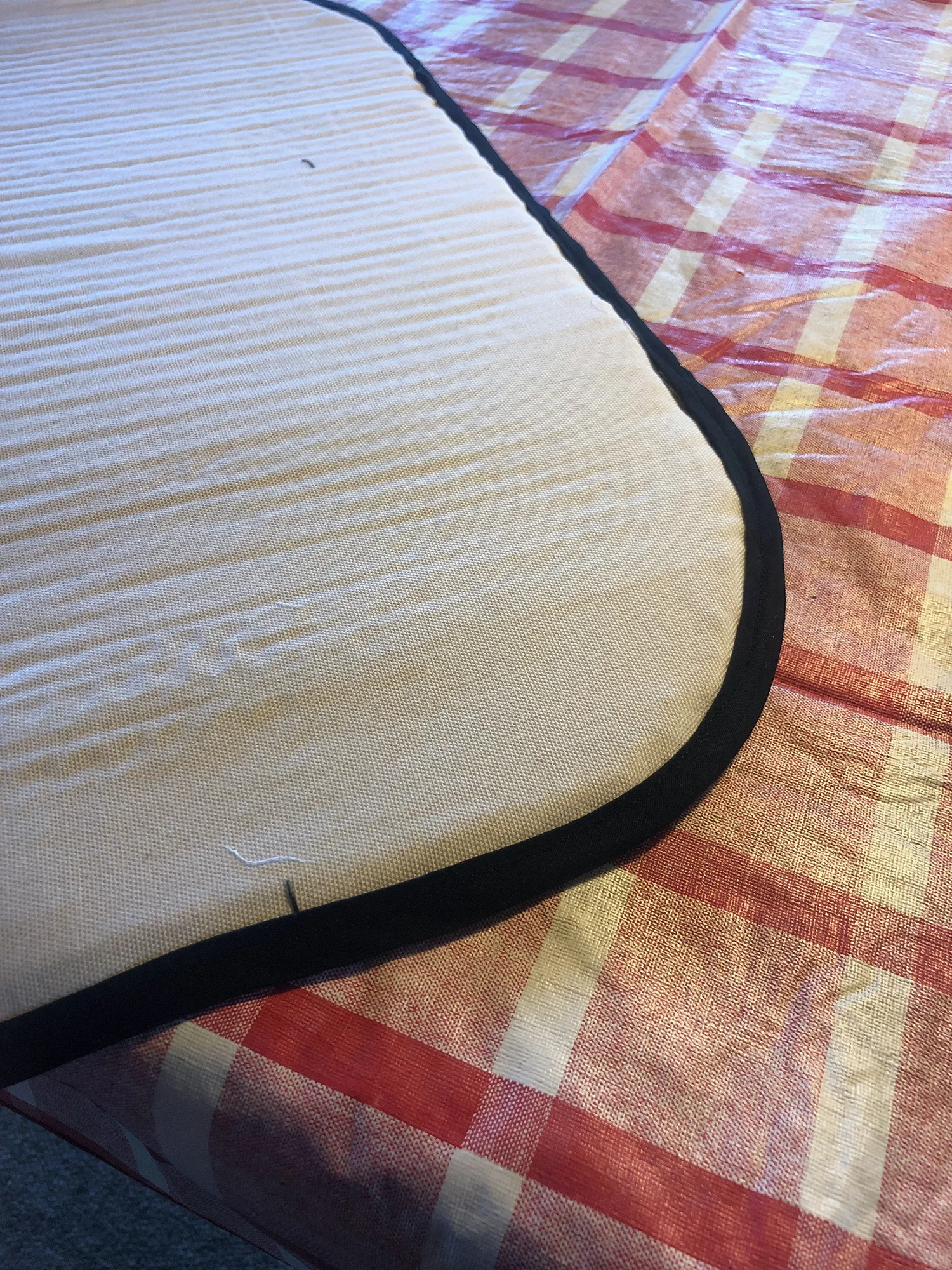 We sewed around the whole window cover before adding the bias tape but realized this probably was not necessary. It did however, keep everything in place but doubled the amount of work. If you are a decent sewer, you can skip that step!